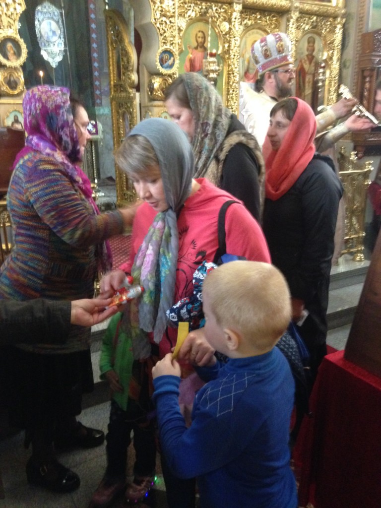 После праздничной Литургии прихожанок храма Святителя Николая с праздником жен-мироносиц поздравил настоятель протоиерей Петр, а воспитанники воскресной школы прочли прекрасные стихотворения и подарили сделанные своими руками поделки.