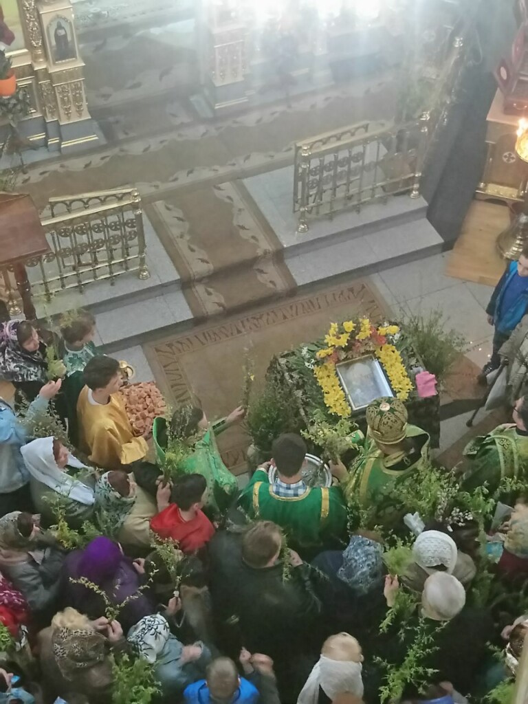 «Днесь благодать Святаго Духа нас собра, и вси, вземше Крест Твой, глаголем: благословен Грядый во Имя Господне, осанна в Вышних».